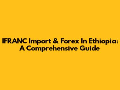 IFRANC Import & Forex In Ethiopia: A Comprehensive Guide