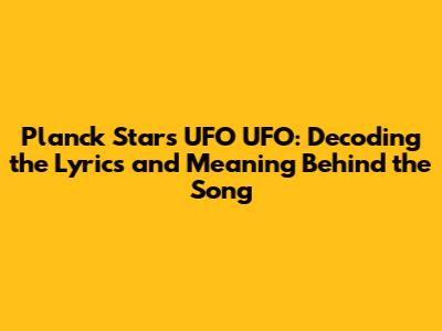 Hey music lovers! Ever stumbled upon a song that just sticks in your head, but you're not quite sure what it's all about? Today, we're diving deep into the mesmerizing world of "Planck Stars UFO UFO" to unravel its lyrics and meaning. So, buckle up and get ready for an exciting journey through sound and imagination!