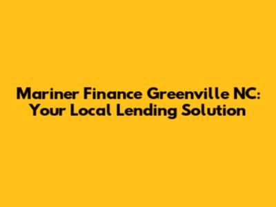 Mariner Finance Greenville NC: Your Local Lending Solution