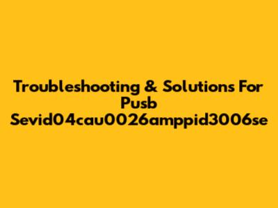 Troubleshooting & Solutions For Pusb Sevid04cau0026amppid3006se