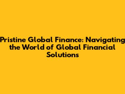 Hey everyone! Let's dive into the world of Pristine Global Finance, a company dedicated to providing top-notch financial solutions on a global scale. In today's interconnected world, managing finances can be complex, especially when dealing with international transactions, investments, and financial planning. That's where Pristine Global Finance steps in, acting as your trusted financial partner to simplify and optimize your financial journey. This article will explore what makes Pristine Global Finance stand out, the services they offer, and why they could be the right choice for your financial needs. So, grab a coffee, sit back, and let's unravel the secrets of Pristine Global Finance together!