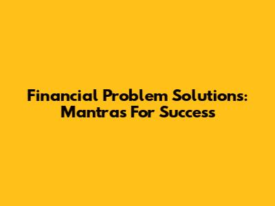Financial Problem Solutions: Mantras For Success