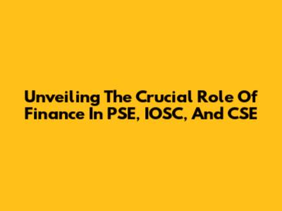 Unveiling The Crucial Role Of Finance In PSE, IOSC, And CSE