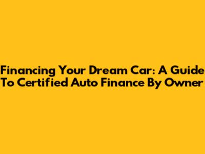 Financing Your Dream Car: A Guide To Certified Auto Finance By Owner