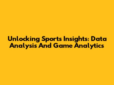 Unlocking Sports Insights: Data Analysis And Game Analytics