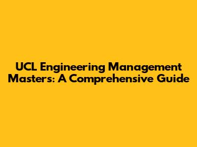 UCL Engineering Management Masters: A Comprehensive Guide