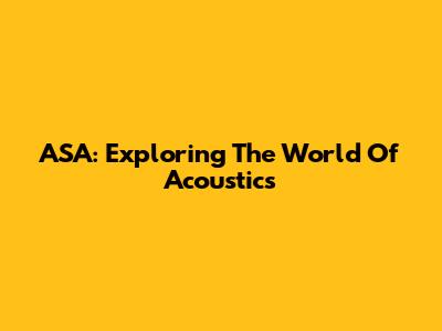 ASA: Exploring The World Of Acoustics