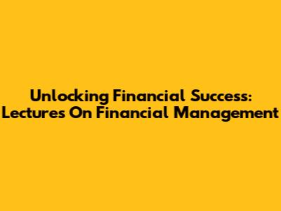 Unlocking Financial Success: Lectures On Financial Management