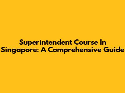 Superintendent Course In Singapore: A Comprehensive Guide