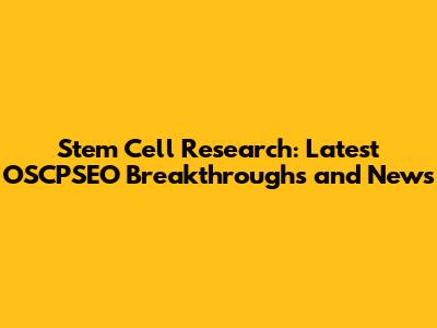 Key OSCPSEO Breakthroughs in Stem Cell Research