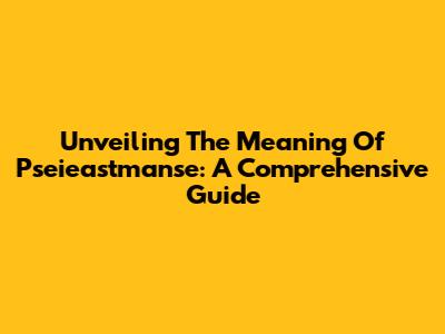 Unveiling The Meaning Of Pseieastmanse: A Comprehensive Guide