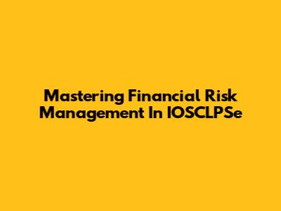 Mastering Financial Risk Management In IOSCLPSe