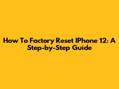 How To Factory Reset IPhone 12: A Step-by-Step Guide