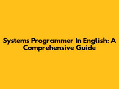 Systems Programmer In English: A Comprehensive Guide