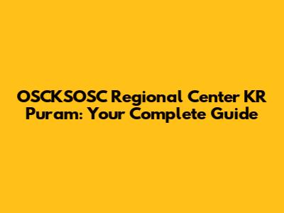OSCKSOSC Regional Center KR Puram: Your Complete Guide
