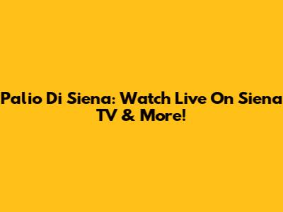 Palio Di Siena: Watch Live On Siena TV & More!