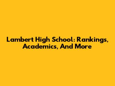 Lambert High School: Rankings, Academics, And More