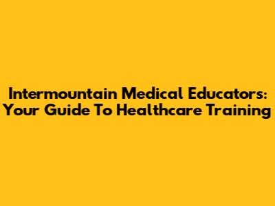 Intermountain Medical Educators: Your Guide To Healthcare Training