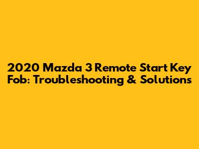 2020 Mazda 3 Remote Start Key Fob: Troubleshooting & Solutions