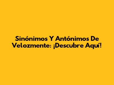 Sinónimos Y Antónimos De Velozmente: ¡Descubre Aquí!